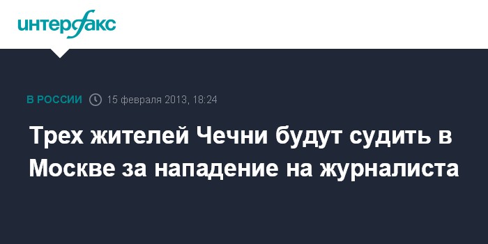 Москва. 15 февраля. INTERFAX.RU - Трое молодых жителей Чечни предстанут перед судом по обвинению в нападении на журналиста Кирилла Панченко, который заступился за девушек в столичном метро.