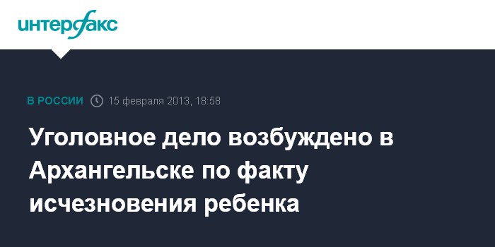 Архангельск. 15 февраля. INTERFAX.RU - Следственное управление Следственного комитета России по Архангельской области и НАО возбудило уголовное дело по факту безвестного исчезновения 12-летней Владиславы Никитиной.