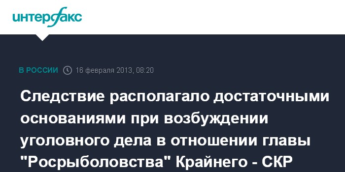 Следствие располагало достаточными основаниями при возбуждении уголовного дела в отношении главы "Росрыболовства" Крайнего - СКР