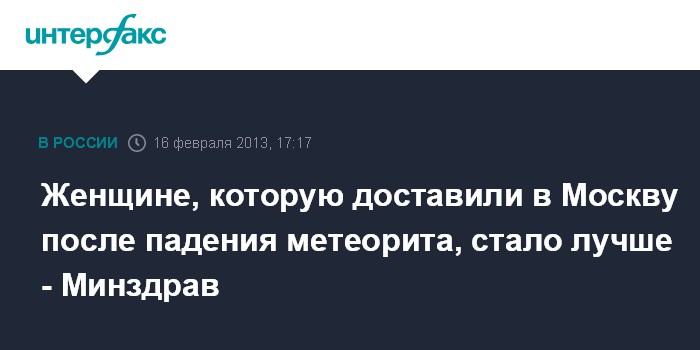Женщине, которую доставили в Москву после падения метеорита, стало лучше - Минздрав