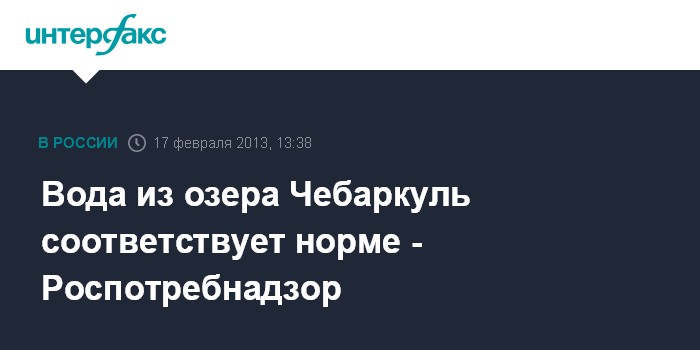 Челябинск. 17 февраля. INTERFAX.RU - Вода озера Чебаркуль в Челябинской области, куда, как считалось, упали обломки метеорита, соответствует санитарным и токсикологическим показателям, сообщает управление Роспотребнадзора по региону в воскресенье.