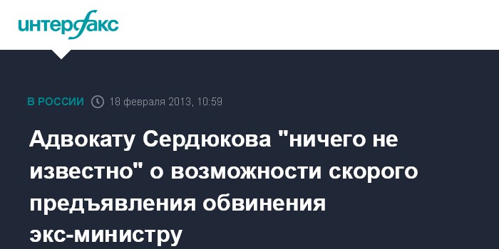 Адвокату Сердюкова "ничего не известно" о возможности скорого предъявления обвинения экс-министру