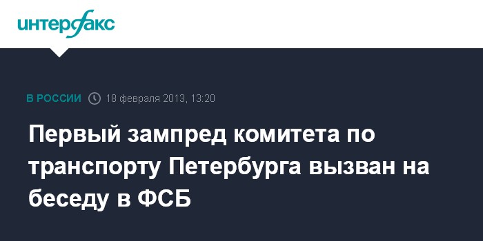 Первый зампред комитета по транспорту Петербурга вызван на беседу в ФСБ