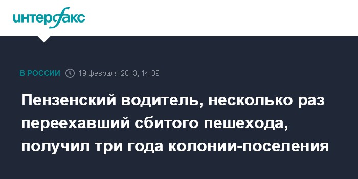 Пензенский водитель, несколько раз переехавший сбитого пешехода, получил три года колонии-поселения