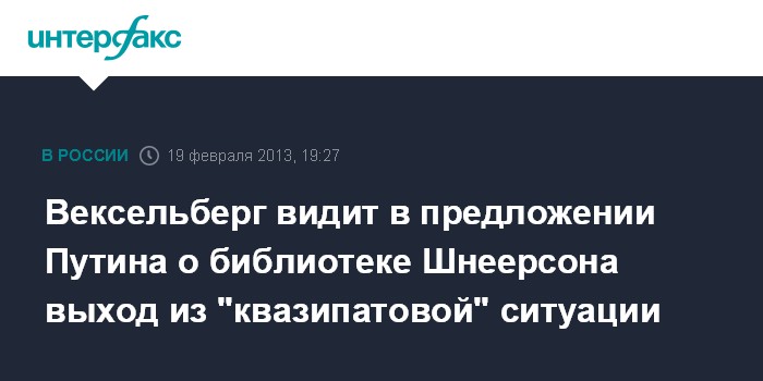 Вексельберг видит в предложении Путина о библиотеке Шнеерсона выход из "квазипатовой" ситуации