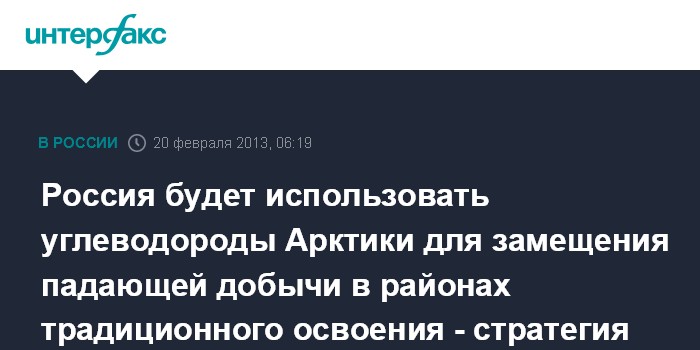 Россия будет использовать углеводороды Арктики для замещения падающей добычи в районах традиционного освоения - стратегия