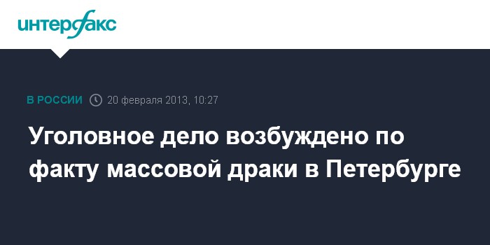 Уголовное дело возбуждено по факту массовой драки в Петербурге