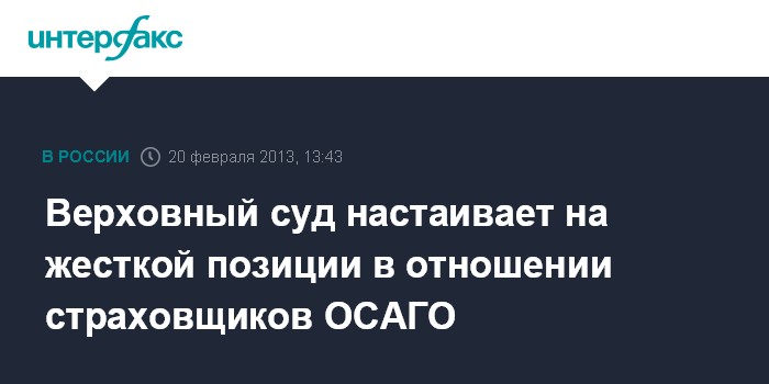 Верховный суд настаивает на жесткой позиции в отношении страховщиков ОСАГО