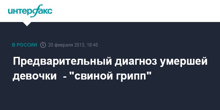 Предварительный диагноз умершей девочки - "свиной грипп"
