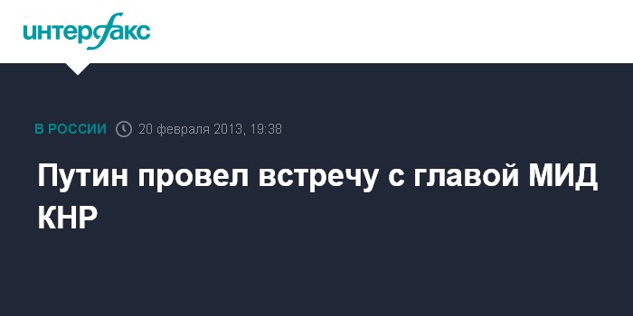 Ново-Огарево. 20 февраля. INTERFAX.RU - Президент России Владимир Путин принял главу МИД КНР Ян Цзечи.