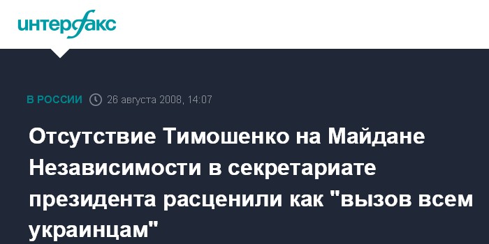 "Вероятно, ей неприятно принимать участие в праздновании Дня Независимости Украины, но она должна соблюдать протокол", - подчеркнул глава секретариата, добавив, что отсутствие премьера, не испортило присутствующим на Майдане праздничного настроения.