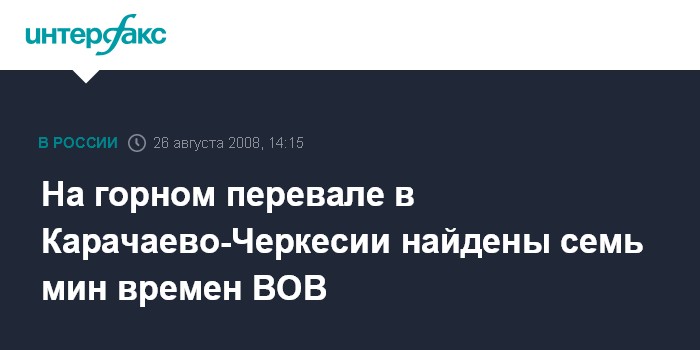 Москва. 26 августа. INTERFAX.RU - Пограничный наряд отдела мобильных действий Пограничного управления ФСБ России по Карачаево-Черкесии во вторник во время выхода на охрану госграницы обнаружил семь мин времен Великой Отечественной войны.