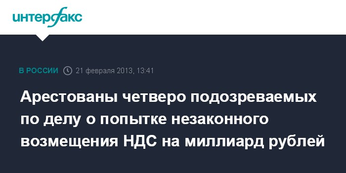 Арестованы четверо подозреваемых по делу о попытке незаконного возмещения НДС на миллиард рублей