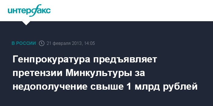 Генпрокуратура предъявляет претензии Минкультуры за недополучение свыше 1 млрд рублей