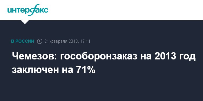 Чемезов: гособоронзаказ на 2013 год заключен на 71%