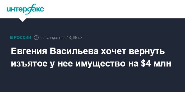 Евгения Васильева хочет вернуть изъятое у нее имущество на $4 млн