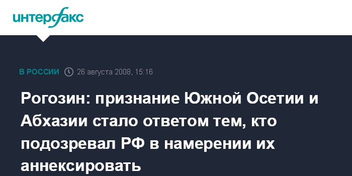Рогозин: признание Южной Осетии и Абхазии стало ответом тем, кто подозревал РФ в намерении их аннексировать