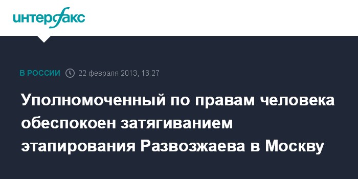 "По информации начальника ГУФСИН России по Иркутской области такое решение (об этапировании) действительно принято и Л.Развозжаева намерены этапировать в Москву 21 февраля 2013 года. Вместе с тем 21.02.2013 при проверке подтверждения факта этапирования Л.Развозжаева установлено, что указанием ФСИН России решение об этапировании отменено до поступления соответствующих документов из Следственного комитета РФ", - говорится в сообщении, размещенном на официальном сайте омбудсмена.