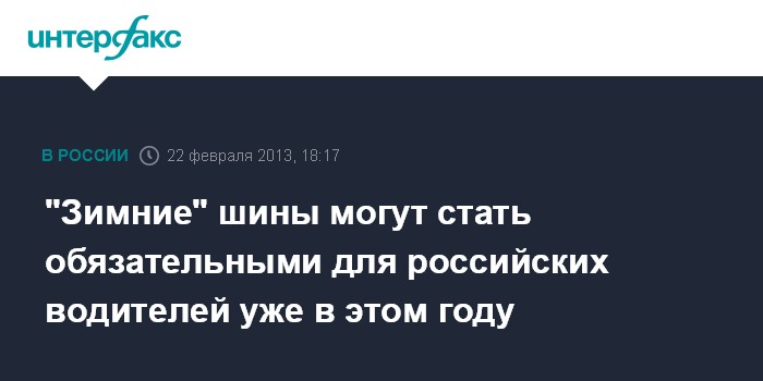 Москва. 22 февраля. INTERFAX.RU - Обязательное использование так называемой "зимней" резины может быть законодательно закреплено в текущем году.