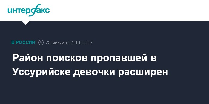"Район поисков расширен. Сейчас полиция и волонтеры осматривают поля и отдаленные районы", - сообщила в субботу агентству "Интерфакс-Дальний Восток" пресс-секретарь ОМВД Уссурийска Ольга Корбут.