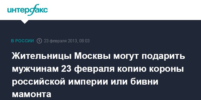 Жительницы Москвы могут подарить мужчинам 23 февраля копию короны российской империи или бивни мамонта
