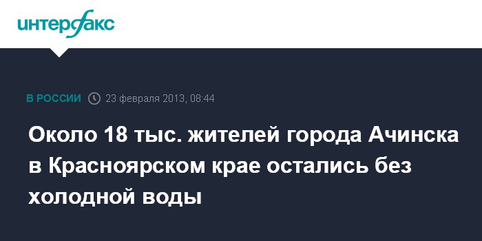 Около 18 тыс. жителей города Ачинска в Красноярском крае остались без холодной воды