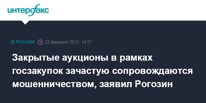 Закрытые аукционы в рамках госзакупок зачастую сопровождаются мошенничеством, заявил Рогозин