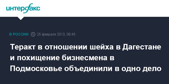 Теракт в отношении шейха в Дагестане и похищение бизнесмена в Подмосковье объединили в одно дело