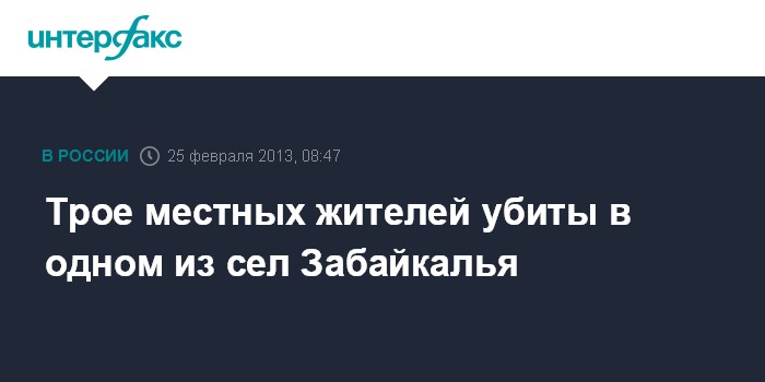 Чита. 25 февраля. INTERFAX.RU - В селе Нерчинский Завод Забайкальского края следствие устанавливает подозреваемых в тройном убийстве, сообщает пресс-служба краевого СУ СКР.