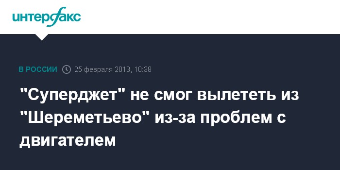 По его словам, самолет SSJ-100, направлявшийся из "Шереметьево" в Харьков, выехал на взлетную полосу и начал набирать скорость для осуществления взлета. Однако по неустановленной причине на борту самолета отказала система управления двигателем №1, и экипаж принял решение прервать взлет.