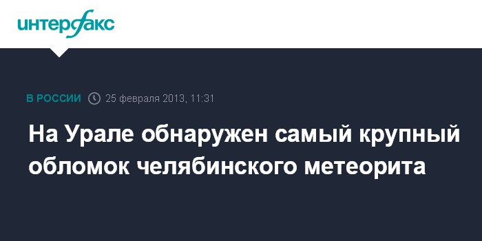 На Урале обнаружен самый крупный обломок челябинcкого метеорита
