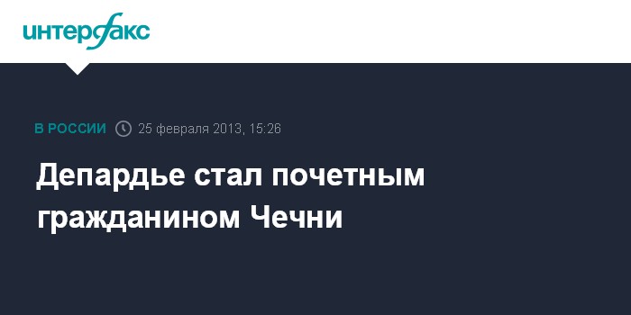 Грозный. 25 февраля. INTERFAX.RU - Известному французскому актеру Жерару Депардье присвоено звание почетного гражданина Чеченской республики, соответствующий указ подписал глава республики Рамзан Кадыров.