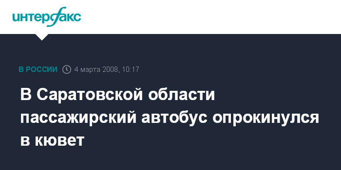 "Водитель автобуса, следовавшего по маршруту Москва-Саратов, не справился на повороте с управлением, в результате чего машина опрокинулась в кювет. В автобусе находилось 15 пассажиров, один из которых пострадал. Остальные 14 пассажиров были размещены в гостинице города Балашова", уточнил собеседник агентства.