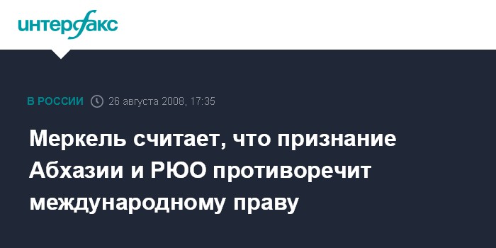 Меркель считает, что признание Абхазии и РЮО противоречит международному праву