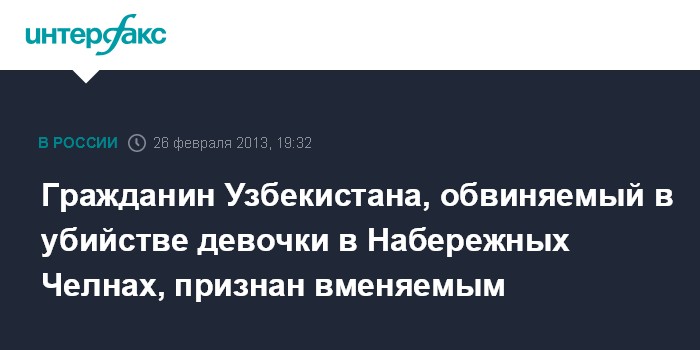 Как сообщил агентству "Интерфакс" старший помощник руководителя СУ СКР по Татарстану Андрей Шептицкий во вторник, по результатам психиатрической экспертизы, обвиняемый в совершении преступления 30-летний гражданин Узбекистана Фаррух Ташбаев признан вменяемым.