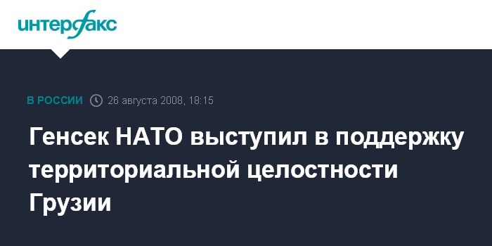 "НАТО полностью поддерживает суверенитет и территориальную целостность Грузии и призывает Россию уважать