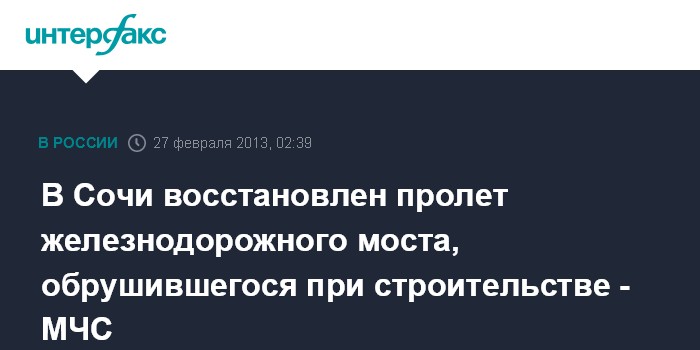 Ростов-на-Дону. 27 февраля. ИНТЕРФАКС-ЮГ - Строители восстановили пролет железнодорожного моста, который обрушился во время строительства в районе города Сочи, сообщили агентству "Интерфакс-Юг" в пресс-службе Южного регионального центра МЧС России.