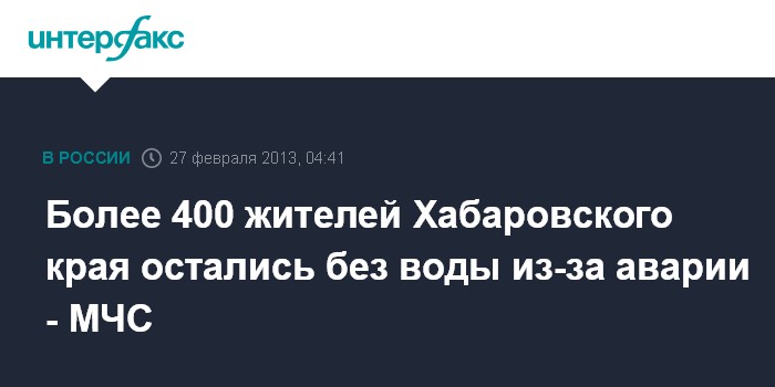 Хабаровск. 27 февраля. ИНТЕРФАКС-ДАЛЬНИЙ ВОСТОК - Порыв трубопровода оставил без холодной воды 435 жителей поселка Дружба Хабаровского края.