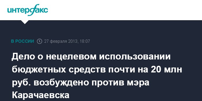 Дело о нецелевом использовании бюджетных средств почти на 20 млн руб. возбуждено против мэра Карачаевска