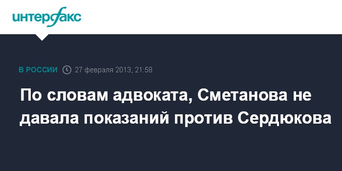 По словам адвоката, Сметанова не давала показаний против Сердюкова
