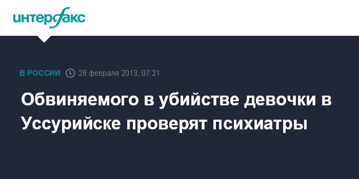 Владивосток. 28 февраля. ИНТЕРФАКС - Психическое здоровье обвиняемого в убийстве восьмилетней Насти Луцишиной в Уссурийске проверят эксперты.