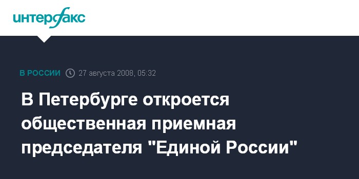 Санкт-Петербург. 27 августа. ИHТЕРФАКС СЕВЕРО-ЗАПАД - Общественная приемная председателя партии "Единая Россия" Владимира Путина откроется в Петербурге в среду.
