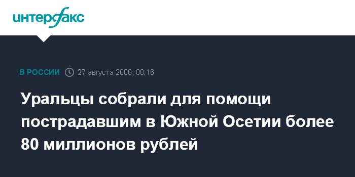 Уральцы собрали для помощи пострадавшим в Южной Осетии более 80 миллионов рублей