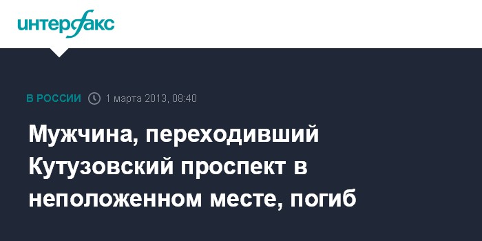 Мужчина, переходивший Кутузовский проспект в неположенном месте, погиб