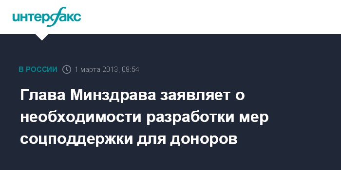 Глава Минздрава заявляет о необходимости разработки мер соцподдержки для доноров