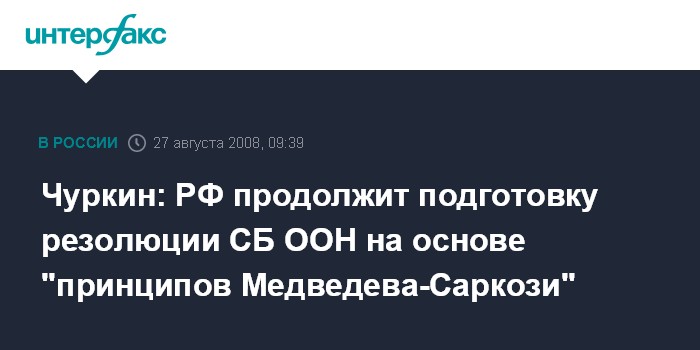 Дипломат напомнил, что шестой принцип, сформулированный двумя президентами, предусматривал возможность международного обсуждения статуса Абхазии и Южной Осетии. "Мы проводили консультации по тому тексту (резолюции), в котором нашли бы отражение все шесть принципов, согласованные президентами России и Франции. Но нам так ни разу и не удалось согласовать проект резолюции, где бы все шесть принципов нашли бы отражение. Наши партнеры постоянно от этого уходят", -сказал Чуркин.