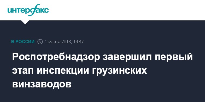 Тбилиси. 1 марта. INTERFAX.RU - Делегация экспертов Роспотребнадзора в пятницу завершила первый этап инспекции грузинских предприятий - производителей вина и минеральной воды, изъявивших желание возобновить поставки своей продукции на рынок РФ.