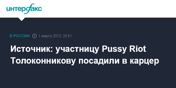 Источник: участницу Pussy Riot Толоконникову посадили в карцер