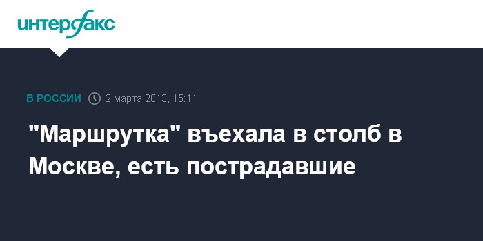Москва. 2 марта. INTERFAX.RU - Маршрутное такси врезалось в столб на северо-востоке столицы, пострадали десять человек, сообщил "Интерфаксу" источник в правоохранительных органах. По его данным, инцидент произошел в Лианозовском проезде, где маршрутное такси, водитель которого не справился с управлением на скользкой дороге, совершил наезд на фонарный столб.