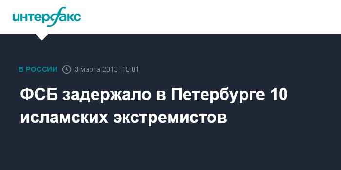 Санкт-Петербург. 3 марта. INTERFAX.RU - Сотрудники управления ФСБ по Петербургу и Ленинградской области задержали на территории региона 10 членов запрещенной исламской экстремистской организации, сообщили "Интерфаксу" в пресс-службе управления в воскресенье.
